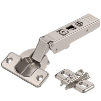 Zawias nakładany do wąskich ramek | Z dociągiem | Clip | Srebrny 71B950A + Prowadnik 173L6100