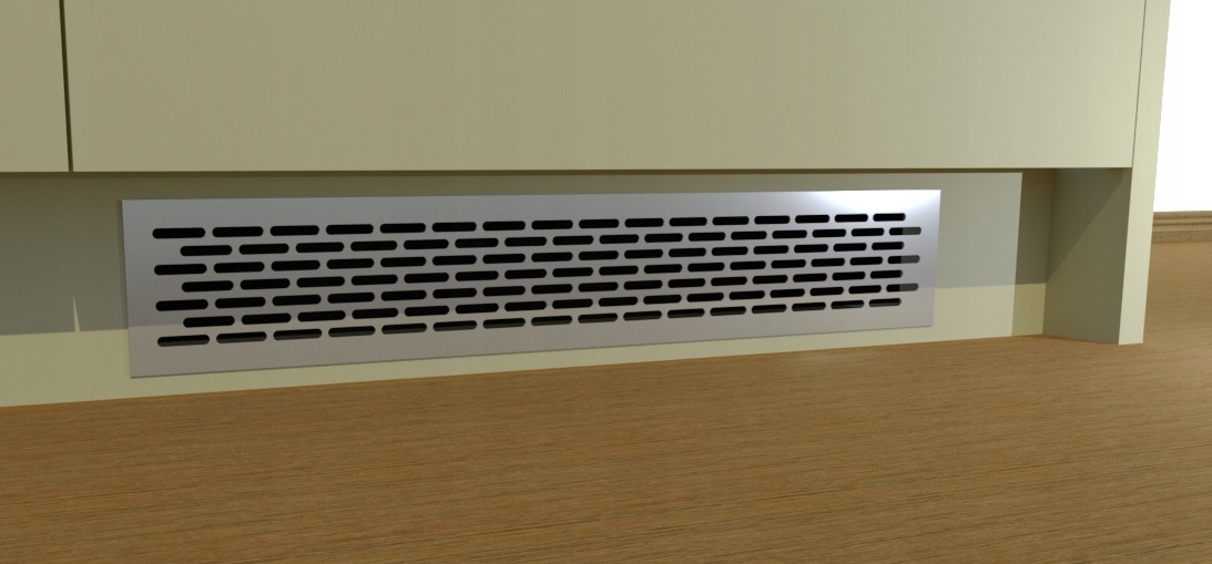 Aluminiowa kratka wentylacyjna. Produkt ten doskonale nadaje się do mebli, kominków, drzwi, mikrofalówek, a przede wszystkim pod lodówkę.